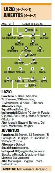 FANTACALCIO LAZIO JUVENTUS PROBABILI FORMAZIONI – Tra Lazio e Juventus sono i biancocelesti che hanno molto da perdere. Infatti la formazione di Reja cercherà di vincere per restare saldamente al quarto posto in classifica. Le probabili formazioni del Corriere dello Sport.