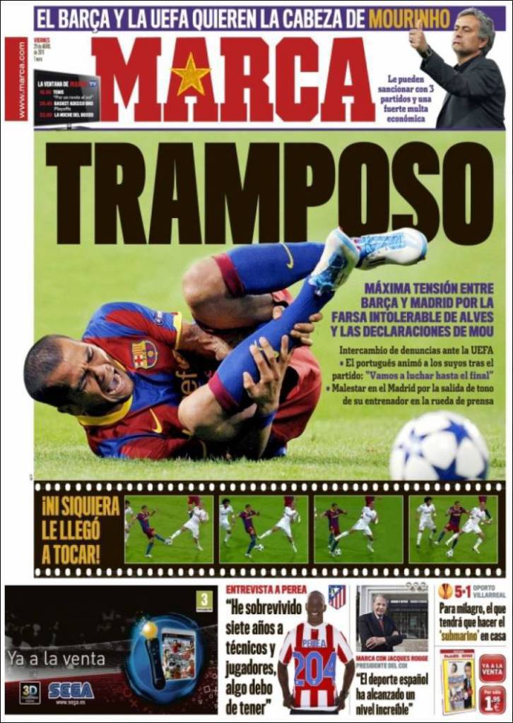 MARCA ALVES BARCELLONA – Non si placano le polemiche tra Real Madrid e Barcellona dopo il rosso a Pepe per il fallo su Alves che secondo Marca ha accentuato il dolore al piede.