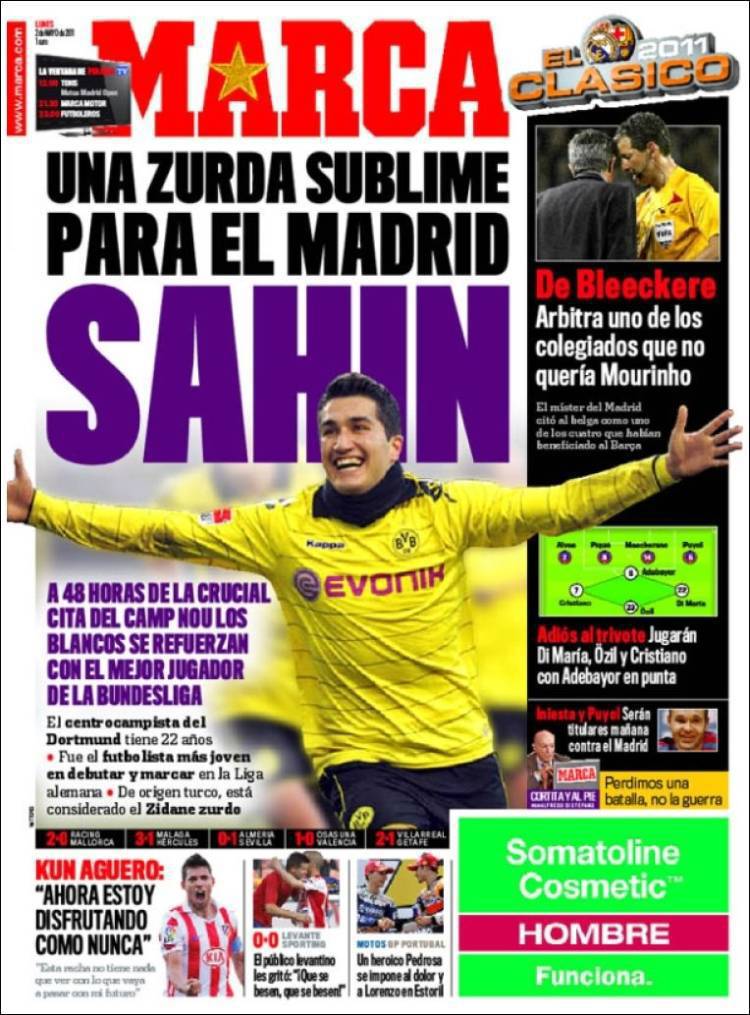 MARCA REAL MADRID INTER – Sul quotidiano spagnolo Marca si parla del mercato del Real Madrid con l’acquisto di Sahin, centrocampista turco del Borussia Dortmund.