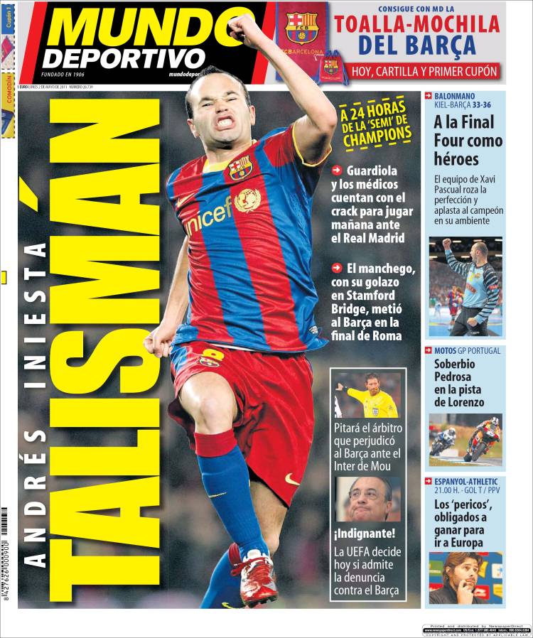 MUNDO DEPORTIVO INIESTA – Sul quotidiano catalano Mundo Deportivo si parla di Andreas Iniesta, centrocampista spagnolo del Barcellona, per molti un vero e proprio talismano.