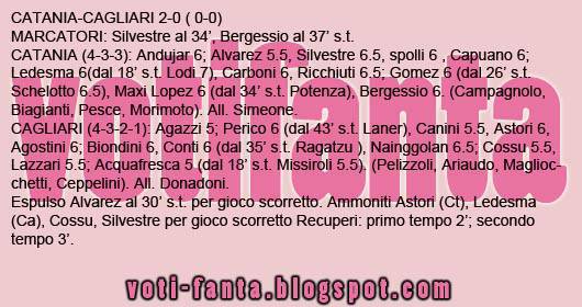 FANTACALCIO VOTI PAGELLE GAZZETTA CAGLIARI CATANIA – Il Catania batte il Cagliari per due a zero. Impresa degli etnei che in dieci uomini hanno ottenuto tre punti fondamentali per la salvezza. Ecco i voti e le pagelle della Gazzetta dello Sport.