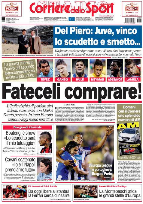 CORRIERE EXTRACOMUNITARI – Sul Corriere dello Sport si parla della regola sugli extracomunitari che non permette ai club italiani di acquistare più giocatori non comunitari.