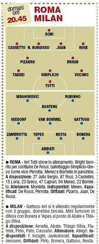 FANTACALCIO ROMA MILAN PROBABILI FORMAZIONI – Domani sera anticipo della 36esima giornata di campionato tra Roma e Milan. Ai rossoneri basta un solo punto per vincere matematicamente lo Scudetto numero 18, ma di fronte ci sarà la Roma di Montella pronta a strappare i tre punti per la Champions League. Ecco le probabili formazioni secondo il Corriere dello Sport.