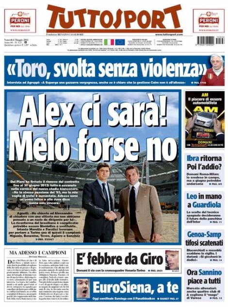 TUTTOSPORT DEL PIERO MELO – Su Tuttosport si parla non solo del rinnovo di Del Piero ma anche della possibile cessione di Felipe Melo.