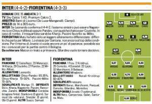 FANTACALCIO SERIE A PROBABILI FORMAZIONI INTER FIORENTINA- Nella sfida di domani (ore 15) tra Inter e Fiorentina Mihajlovic affonterà ancora una volta il suo passato ma quasi sicuramente dovrà fare a meno di Mutu e Santana, infortunati. Secondo La Gazzetta dello Sport, inoltre, nell’Inter invece si dovrebbe rivedere Chivu. Leonardo inoltre infatti dovrebbe confermare il 4-4-2 e schierare Nagatomo come esterno sinistro di centrocampo. Ecco le formazioni in foto.