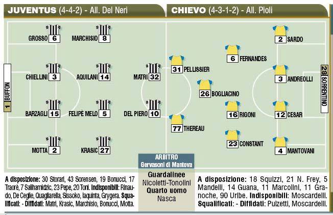 SERIE A JUVENTUS-CHIEVO PROBABILI FORMAZIONI – La Juventus cerca una clamorosa qualificazione in Champions League: i risultati favorevoli di settimana scorsa hanno rimesso in corsa i bianconeri. Fondamentale dunque conquistare i tre punti contro il Chievo: una vittoria servirebbe a mantenere vive le speranze per una qualificazione che significherebbe un ritorno economico importante da reinvestire sul mercato, oltre che un maggiore prestigio in fase di trattativa. Dall’altra parte il Chievo è praticamente certo della salvezza ma sicuramente venderà cara la pelle: il finale di stagione ha dimostrato che squadre senza più obiettivi da raggiungere (per esempio Bari e Palermo) si siano rivelate degli avversari tostissimi. Ecco in foto le probabili formazioni del Corriere dello Sport: