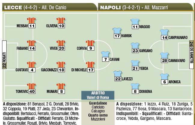 SERIE A LECCE-NAPOLI PROBABILI FORMAZIONI – Il Napoli vuole difendere il terzo posto e sognare in un assalto al secondo, il Lecce lotterà con tutte le forze per centrare la salvezza: obiettivi decisamente opposti quelli tra le squadre che si affronteranno al Via del Mare. Il Lecce è un avversario a cui piace molto giocare a calcio: nonostante il gioco di qualità i giallorossi pagano dazio in difesa, dove si vedono i maggiori problemi. Un avversario in teoria congeniale al Napoli, che invece soffre molto le squadre che si chiudono e ripartono velocemente: una sfida che ha tutto il sapore di essere uno scontro in campo aperto. Ecco in foto le probabili formazioni dell’incontro tratte dal Corriere dello Sport: