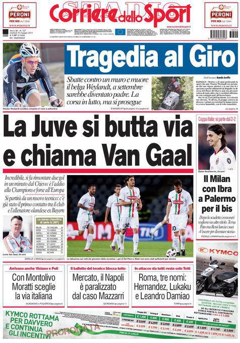 CORRIERE JUVENTUS VAN GAAL – Sul Corriere dello Sport si parla della Juventus che ieri ha dato l’addio definitivo alla Champions League pareggiando due a due contro il Chievo. Si parla di Van Gaal per la panchina.