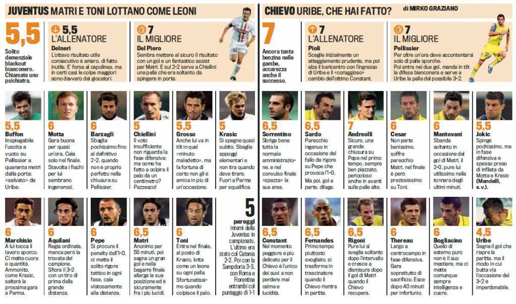 FANTACALCIO JUVENTUS CHIEVO VOTI PAGELLE GAZZETTA – La Juventus butta via i tre punti contro il Chievo. Finisce due a due con i clivensi che recuperano due gol. Bene Del Piero e Pellissier, male Chiellini e Uribe. I voti della Gazzetta dello Sport.