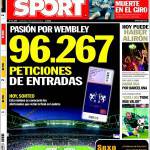 Sport: 96.267 richieste di biglietti 10/05/2011 di Ruggieri SPORT BIGLIETTI CHAMPIONS – Sul quotidiano catalano Sport si parla della finale di Champions League con quasi 97 mila tifosi del Barcellona che hanno richiesto il biglietto. Claudio Ruggieri – www.calciomercatonews.com