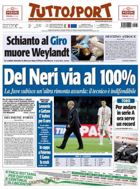 TUTTOSPORT DELNERI JUVENTUS – Su Tuttosport si parla del futuro di Delneri che lascerà la Juventus a fine stagione.