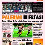 Gazzetta dello Sport: Palermo in estasi 11/05/2011 di Ruggieri GAZZETTA PALERMO COPPA ITALIA – Sulla Gazzetta dello Sport si parla della vittoria del Palermo sul Milan per due a uno nella semifinale di ritorno di Coppa Italia. I siciliani sono in finale. Claudio Ruggieri – www.calciomercatonews.com