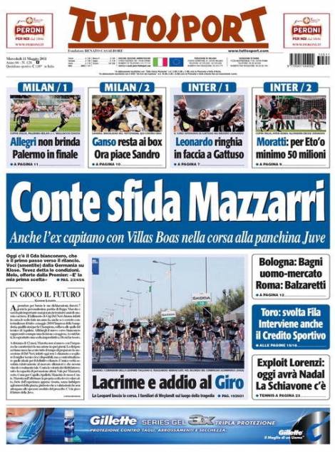 TUTTOSPORT CONTE MAZZARRI – Su Tuttosport si parla della panchina della Juventus con Conte in pole con Mazzarri.