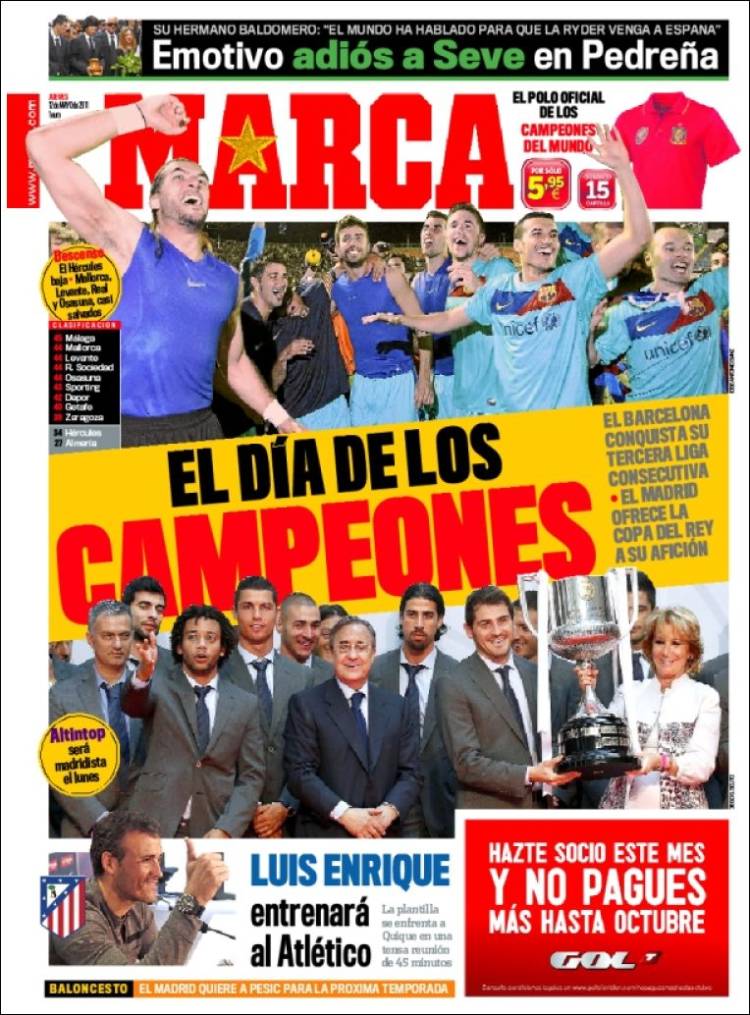 MARCA BARCELLONA REAL MADRID – Sul quotidiano Marca si parla del Barcellona che con il punto conquistato a Levante vince la Liga per il terzo anno consecutivo.