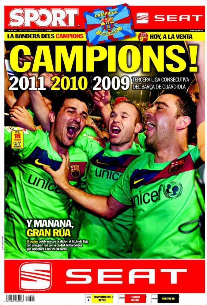 SPORT BARCELLONA – Il quotidiano catalano Sport esalta il Barcellona che per la terza stagione consecutiva vince il campionato.