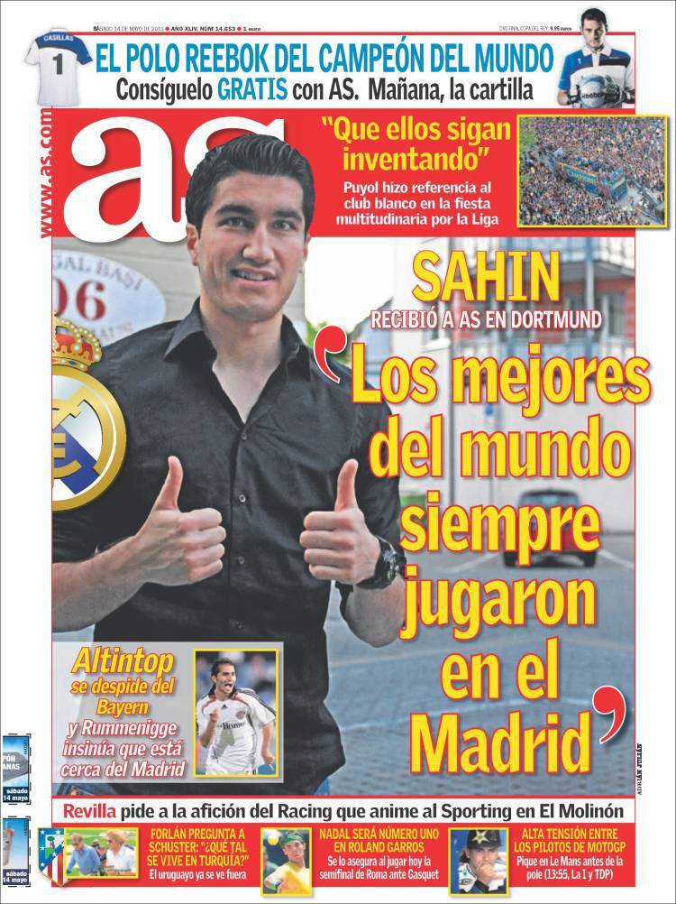 AS REAL MADRID SAHIN – Sul quotidiano spagnolo As c’è una lunga intervista al neo acquisto del Real Madrid Sahin, prelevato dal Borussia Dortmund campione di Germania.