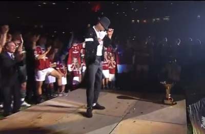 MILAN MOONWALKER BOATENG VIDEO – Al termine della vittoria del Milan contro il Cagliari è grande festa a San Siro. I giocatori rossoneri, dopo aver sfilato davanti ai propri tifosi, hanno alzato la coppa scudetto al cielo. In seguito, fuochi d’artificio, giri del campo e il tanto atteso moonwalker di Boateng. Il centrocampista del Milan, uno dei protagonisti della stagione, ha danzato alla Michael Jackson davanti a 80.000 tifosi. Di seguito il video.