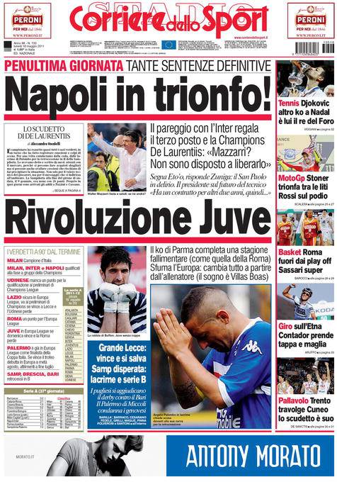 Corriere dello Sport: Rivoluzione Juve 16/05/2011 di Ruggieri CORRIERE JUVENTUS – Sul Corriere dello Sport si parla di rivoluzione Juventus dopo l’ennesima sconfitta subita questa volta a Parma con un gol dell’ex Giovinco. Claudio Ruggieri – www.calciomercatonews.com