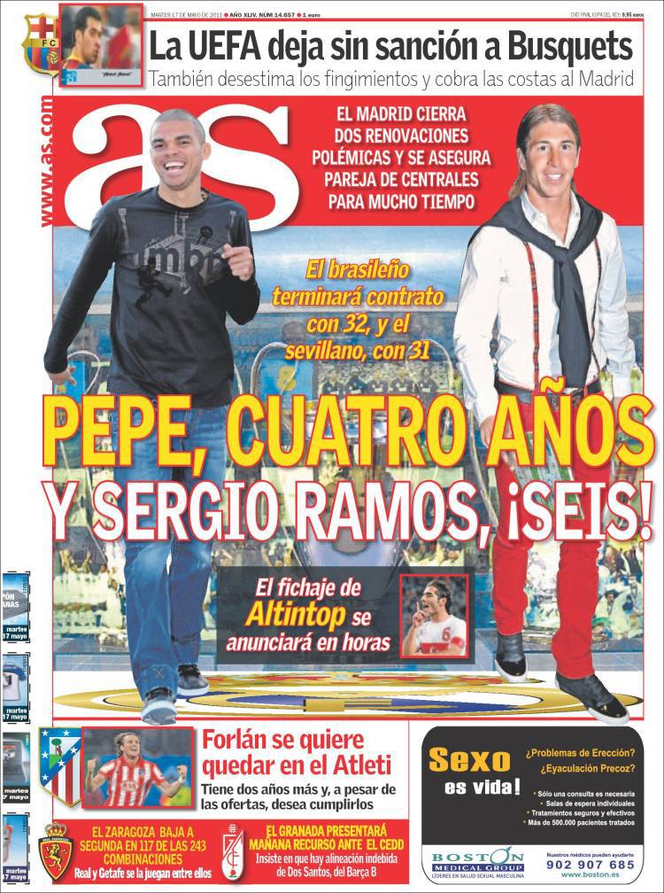 AS REAL MADRID PEPE RAMOS – Tempo di rinnovi in casa Real Madrid. Pepe si è legato alle Merengues fino a quando compirà 32 anni, mentre Sergio Ramos ha siglato un nuovo accordo che scadrà quando il terzino ne avrà 31.