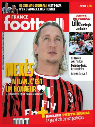 CALCIOMERCATO MILAN MEXES FOTO NUOVA MAGLIA – Eccola la prima foto di Philippe Mexes con la nuova maglia del Milan, stagione 2011-2012. La fotografia, sull’edizione di France Football che esce oggi nelle edicole, ufficializza di fatto (se ancora vi fossero dei dubbi) l’arrivo del centrale transalpinto a Milanello. Mexes migliorerà ulteriormente il reparto arretrato rossonero, aggiungendo alla difesa un rinforzo di sicuro valore. Il centrale ex-Roma si alternerà con Alessandro Nesta affiancando il perno insostituibile Thiago Silva. Di seguito la foto: come vi sembra Mexes in queste nuove vesti?