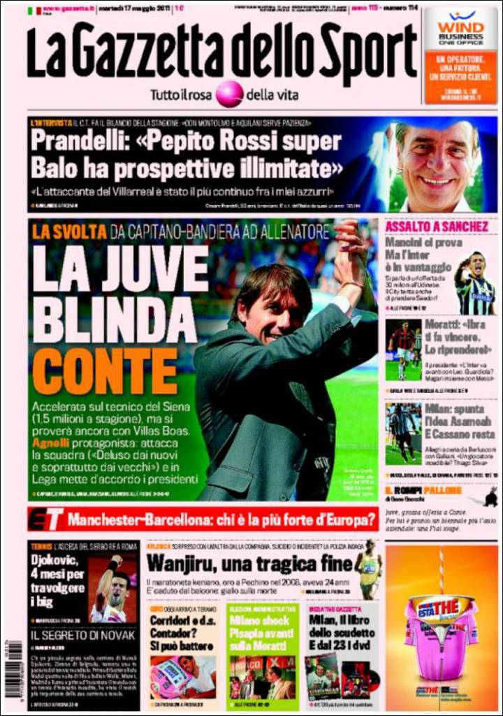 GAZZETTA DELLO SPORT JUVENTUS CONTE – Da capitano ad allenatore, questo il percorso di Antonio Conte anche secondo la Gazzetta dello Sport.