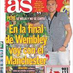 As: “Nella finale di Wembley sto con il Manchester” 18/05/2011 di Ruggieri AS PEPE REAL MADRID – Sul quotidiano spagnolo As parla Pepe, difensore del Real Madrid, che rivela di tifare Manchester nella finale di Champions League contro il Barcellona. Claudio Ruggieri – www.calciomercatonews.com