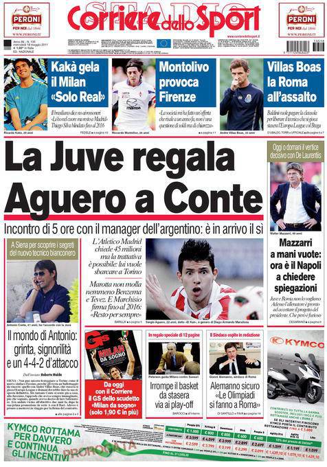 CORRIERE JUVENTUS AGUERO CONTE – Anche il Corriere dello Sport parla del possibile arrivo di Aguero alla Juventus.