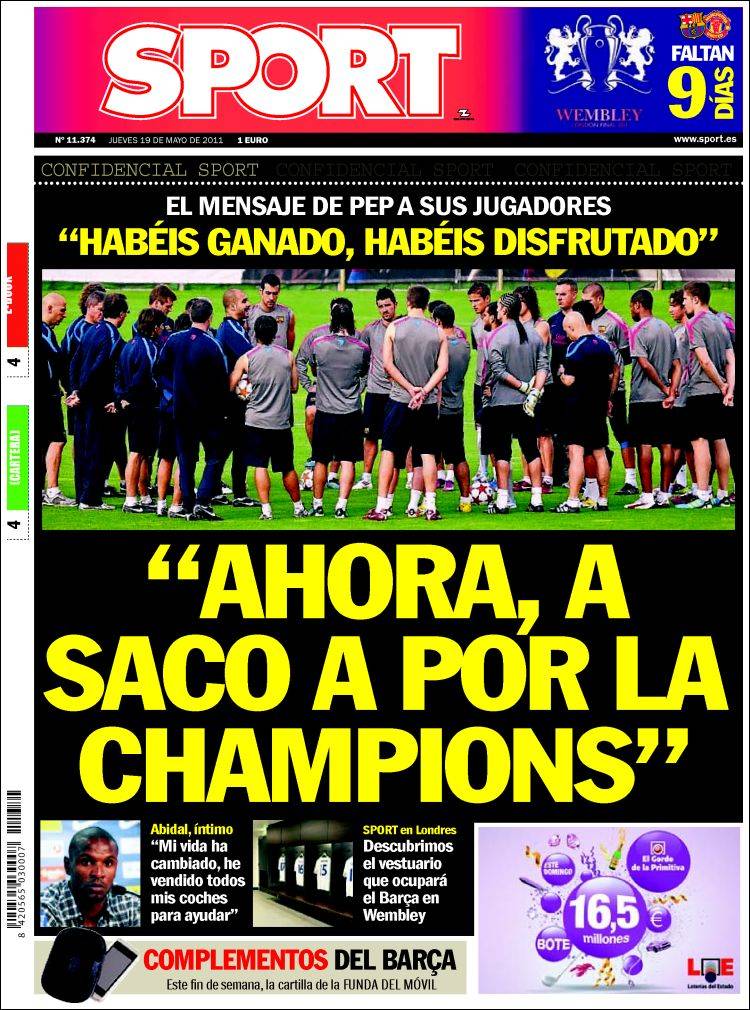 SPORT CHAMPIONS BARCELLONA – Sul quotidiano catalano Sport si parla della finale di Champions League che si giocherà a Wembley tra Barcellona e Manchester United.