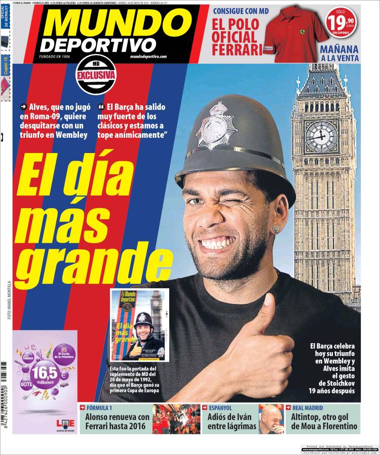 EL MUNDO DEPORTIVO PRIMA PAGINA RASSEGNA STAMPA – El Mundo Deportivo, quotidiano catalano, ripropone una pagina del 1992 riguardante la prima Coppa Campioni conquistata dai blaugrana.