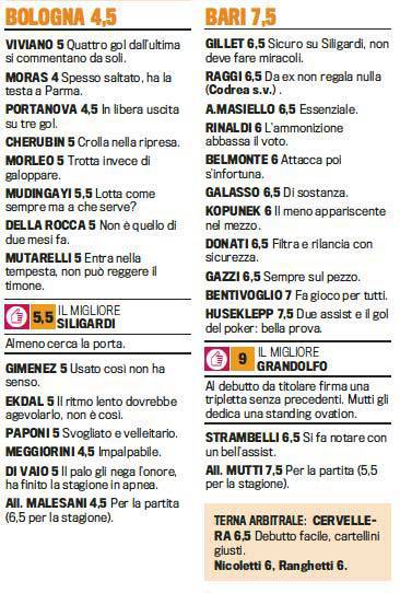 FANTACALCIO BOLOGNA BARI VOTI PAGELLE GAZZETTA – Il Bari sbanca il Dall’Ara vincendo quattro a zero. Grande protagonista il baby Grandolfo, classe 92′, autore di una tripletta nel giorno del suo debutto in Serie A. I voti e le pagelle della Gazzetta dello Sport.