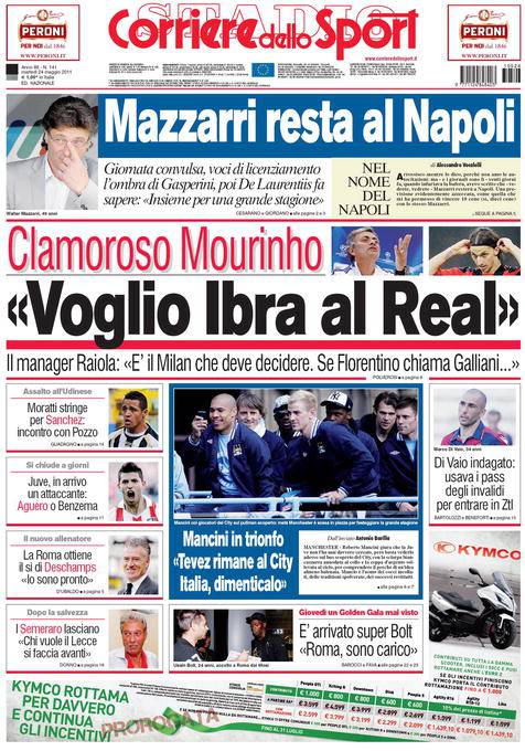 CORRIERE IBRAHIMOVIC REAL MADRID – Sul Corriere dello Sport si parla di Ibrahimovic con Mourinho che ha rivelato di volere lo svedese al Real Madrid.