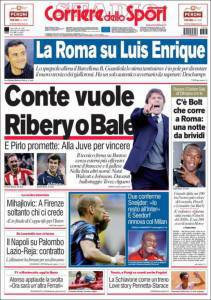 RASSEGNA STAMPA CORRIERE DELLO SPORT JUVENTUS RIBERY BALE – Bale e Ribery, due esterni super offensivi per lo spregiudicato 4-2-4 di Antonio Conte. La Juventus proverà ad accontentare il tecnico pugliese cerando di regalargliene almeno uno.