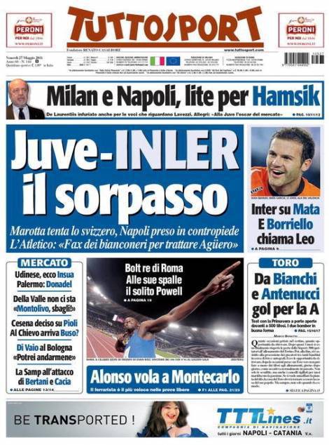 TUTTOSPORT JUVENTUS INLER – Su Tuttosport si parla del mercato Juventus con i bianconeri in vantaggio su Inler dell’Udinese.