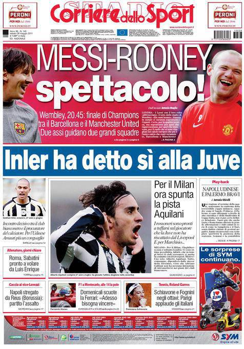 CORRIERE MESSI ROONEY – Sul Corriere dello Sport si parla della grande sfida di questa sera tra Barcellona e Manchester United, finale di Champions League.