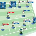 CALCIOMERCATO JUVENTUS OBIETTIVI RUOLO – Si preannuncia un mercato scoppiettante quello della Juventus di Antonio Conte. Il tecnico bianconero infatti ha deciso di puntare su calciatori importanti per il suo 4-2-4. In difesa soprattutto a destra ci sono tanti nomi, da Lichtsteiner a Beck, senza dimenticare Cassani. Al centro della difesa piacciono Kjaer e Rolando, mentre grandi manovra sugli esterni d’attacco con nomi altisonanti come Ribery, Nani, Elia a sinistra, Walcott possibile colpo a destra. A centrocampo coppia Pirlo-Inler. In attacco confermato Matri, per l’altro ruolo di bomber sfida tra Aguero, Benzema, Tevez ed Higuain. Ecco la foto di Tuttosport.