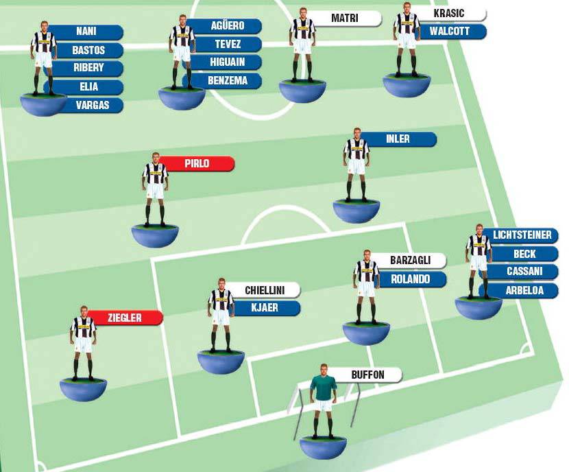 CALCIOMERCATO JUVENTUS OBIETTIVI RUOLO – Si preannuncia un mercato scoppiettante quello della Juventus di Antonio Conte. Il tecnico bianconero infatti ha deciso di puntare su calciatori importanti per il suo 4-2-4. In difesa soprattutto a destra ci sono tanti nomi, da Lichtsteiner a Beck, senza dimenticare Cassani. Al centro della difesa piacciono Kjaer e Rolando, mentre grandi manovra sugli esterni d’attacco con nomi altisonanti come Ribery, Nani, Elia a sinistra, Walcott possibile colpo a destra. A centrocampo coppia Pirlo-Inler. In attacco confermato Matri, per l’altro ruolo di bomber sfida tra Aguero, Benzema, Tevez ed Higuain. Ecco la foto di Tuttosport.