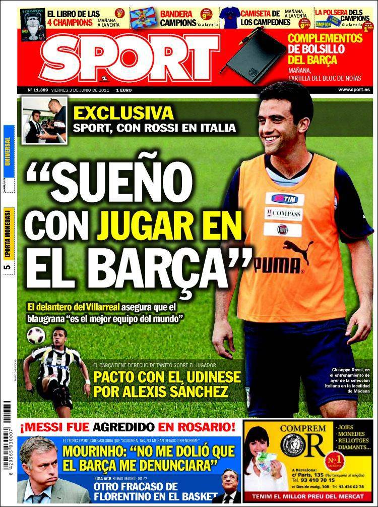 SPORT BARCELLONA – Sul quotidiano catalano Sport intervista esclusiva a Giuseppe Rossi attaccante italiano del Villareal che ha dichiarato di voler giocare nel Barcellona.