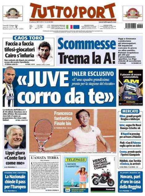 TUTTOSPORT JUVENTUS INLER – Su Tuttosport intervista esclusiva a Gokhan Inler, centrocampista dell’Udinese che piace alla Juventus.