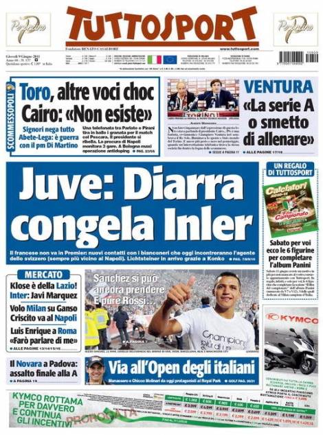 TUTTOSPORT JUVENTUS DIARRA INLER – Su Tuttosport si parla del mercato Juventus con il possibile arrivo di Diarra che allontana Inler.