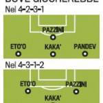 CALCIOMERCATO INTER LEONARDO KAKA’ – I tifosi dell’Inter sognano un altro sgarbo ai cugini del Milan. Dopo l’arrivo di Leonardo ad Appiano Gentile si pensa a portare nella Milano nerazzurra Ricardo Kakà, ex idolo della tifoseria rossonera, oggi malinconico campione del Real Madrid che non sembra aver trovato il feeling giusto con il tecnico Mourinho. Kakà potrebbe arrivare all’Inter spinto da Leonardo, suo grande amico che lo portò in Italia al Milan dal San Paolo. Il tecnico nerazzurro ha già studiato due schemi adatti per inserire il giocatore brasiliano. Il primo è il 4-2-3-1 con Kakà centrale nella linea dei trequartisti, mentre l’altro modulo è il classico 4-3-1-2 con Kakà trequartista dietro a Pazzini ed Eto’o. Ecco la foto della Gazzetta dello Sport.