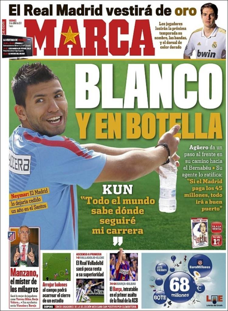 MARCA REAL MADRID AGUERO – Sul quotidiano madrileno Marca si parla del futuro di Aguero che vorrebbe andare al Real Madrid.