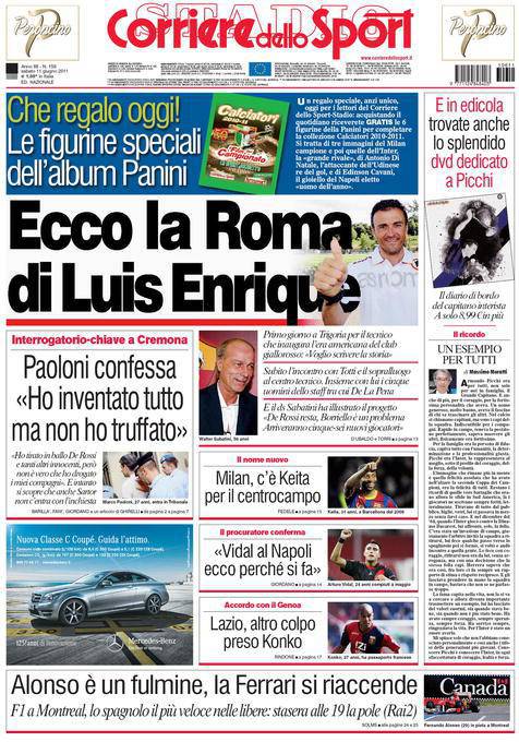 CORRIERE ROMA LUIS ENRIQUE – Sul Corriere dello Sport viene presentata la Roma di Luis Enrique. Il nuovo tecnico giallorosso è pronto a far divertire i tifosi.