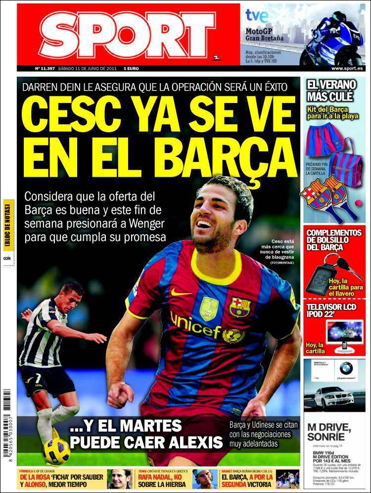 SPORT FABREGAS BARCELLONA – Sul quotidiano catalano Sport si parla del futuro di Fabregas che è convinto di poter vestire finalmente la maglia del Barcellona.
