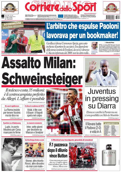 CORRIERE MILAN SCHWEINSTEIGER – Sul Corriere dello Sport si parla del mercato del Milan con l’assalto al centrocampista tedesco Bastian Schweinsteiger.