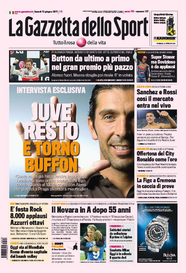 GAZZETTA JUVENTUS BUFFON – Sulla Gazzetta dello Sport intervista esclusiva a Buffon, portiere della Juventus, che ha confermato la sua volontà di restare a Torino.