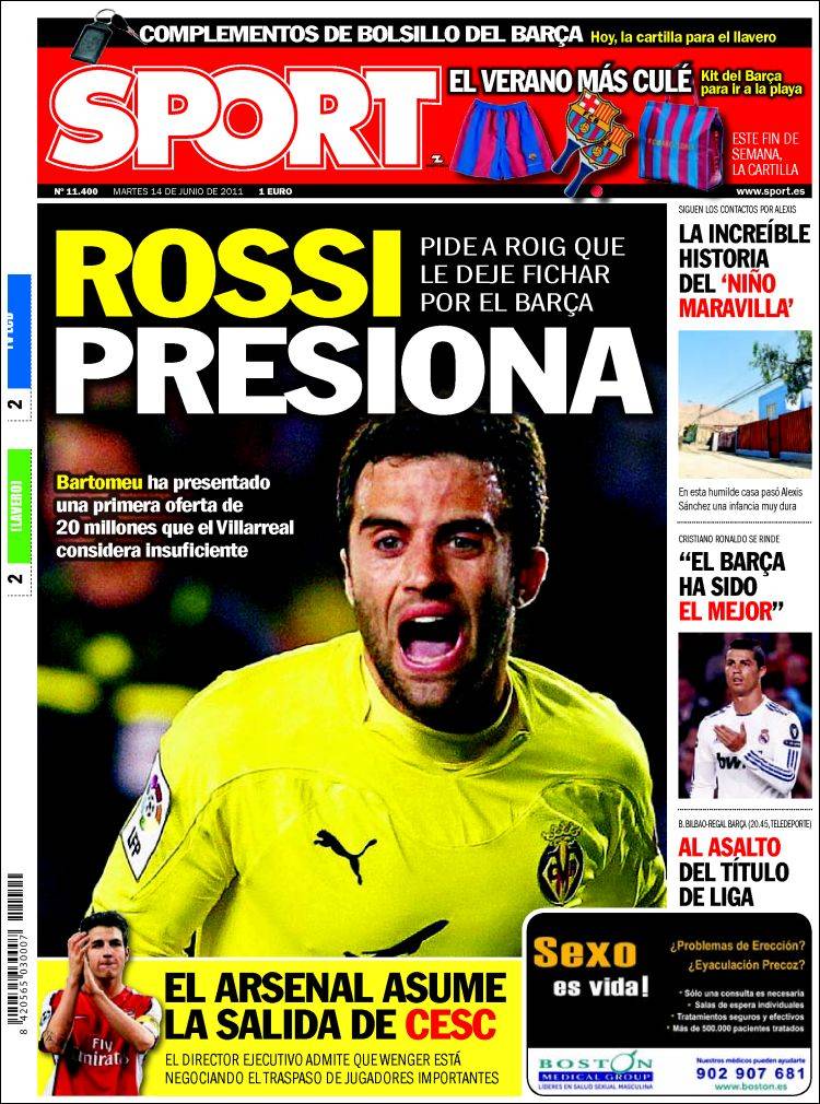 SPORT ROSSI VILLAREAL – Anche l’altro quotidiano catalano Sport parla della vicenda di Giuseppe Rossi che ha chiesto al Villareal di essere ceduto.