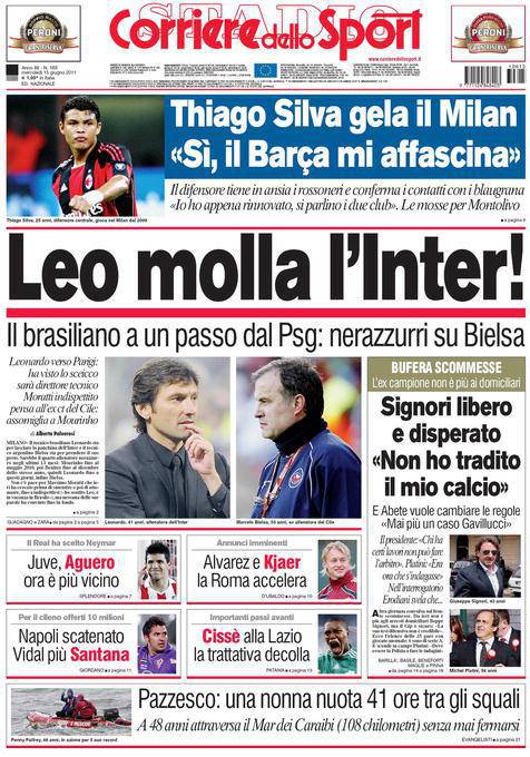 CORRIERE INTER BIELSA – Anche il Corriere dello Sport parla del ribaltone Inter con Leonardo a un passo dall’addio. Il sostituto sarà Bielsa.
