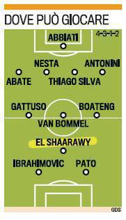 CALCIOMERCATO MILAN EL SHAARAWY – Il Milan ha praticamente acquistato il giovane Stephan El Shaarawy, considerato il nuovo talento del calcio italiano e mondiale. Il “Faraone”, classe 92′, dovrebbe essere ufficializzato oggi. Il Milan verserà al Genoa 6,8 milioni di euro per la metà del cartellino dell’italo-egiziano. Allegri lo vorrebbe subito a Milanello, il tecnico toscano è pronto a buttarlo subito nella mischia nel ruolo di trequartista con Boateng che scalerebbe a centrocampo, come riportato nella foto della Gazzetta dello Sport. El Shaarawy però potrebbe anche giocare da mezz’ala tecnica con Boateng trequartista, una soluzione che stuzzica la fantasia di Allegri, anche se lo stile di gioco dell’ex talento del Padova assomiglia molto a quello di un trequartista.