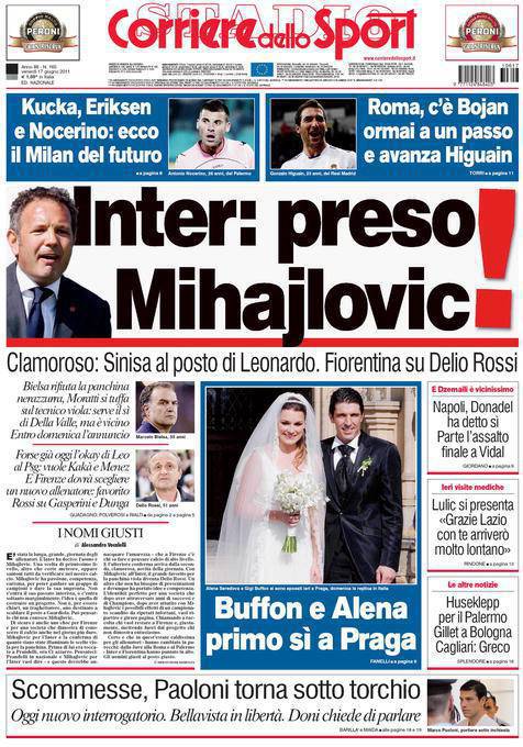 CORRIERE INTER MIHAJLOVIC – Il Corriere dello Sport è sicuro: il prossimo tecnico dell’Inter sarà Sinisa Mihajlovic.
