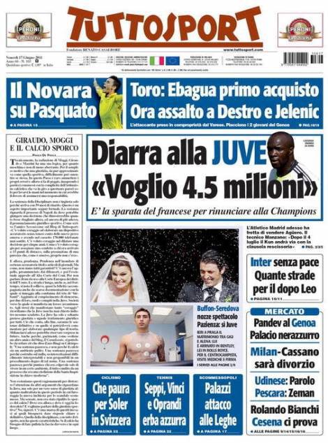 TUTTOSPORT DIARRA JUVENTUS – Sul quotidiano Tuttosport si parla del mercato Juventus con Diarra che ha chiesto 4,5 milioni di euro come ingaggio.